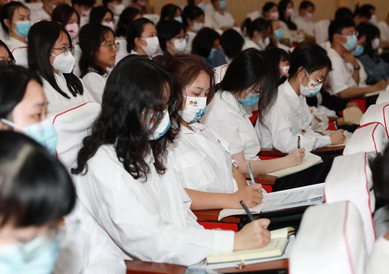 党政办公室、宣传统战部、校团委等负责人、各二级学院党总支书记和思政课教师、辅导员、学生党员等代表近300人现场聆听开学第一课。