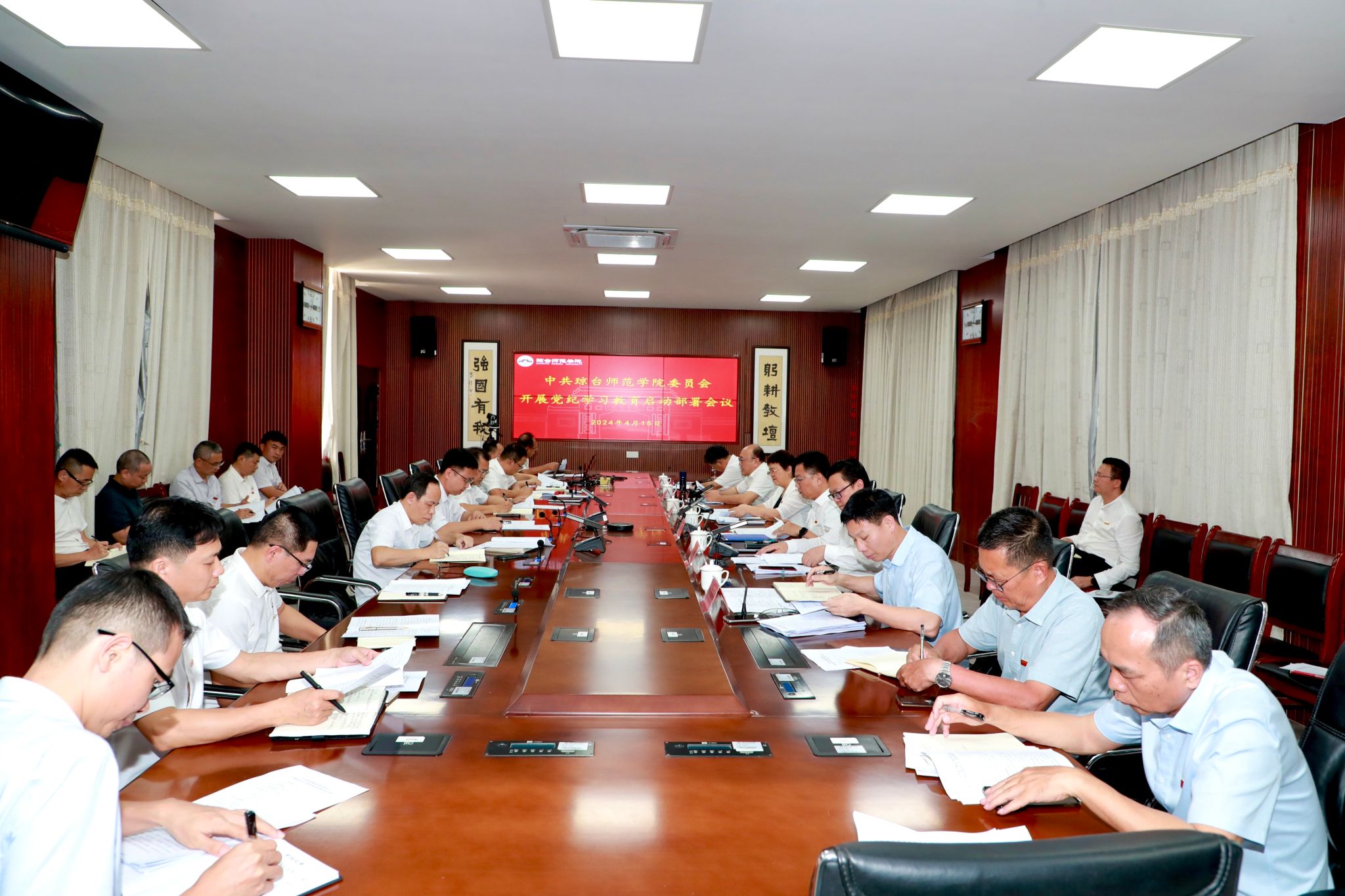 4月15日下午,我校党委在桂林洋校区行政楼三楼会议室召开党纪学习教育动员部署会议,传达学习习近平总书记关于党纪学习教育的重要讲话和重要指示精神、贯彻落实中央党的建设工作领导小组会议精神以及省委常委会会议暨党的建设工作领导小组会议精神,结合我校实际研究部署党纪学习教育工作。会议由副校长林琛主持。